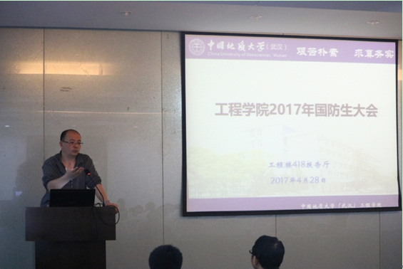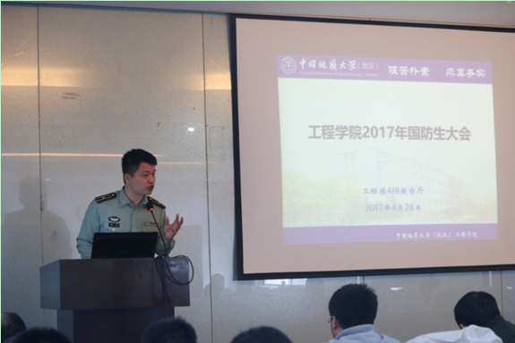 (通讯员:文新)4月28日上午,beat365 手机版官方网站2017年国防生大会在工程楼418报告厅召开。院党委副书记江广长,校国防办主任李凛,驻校选培办干事谭皓,辅导员丁继国、文新、王俊以及学院全体国防生参加了大会。