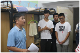 陈飞、焦玉勇、江广长、王亮清、窦斌先后前往60栋六单元和四单元看望本科新生。院领导询问了新生对学校的初映象,查看了新生宿舍的住宿、热水情况,还与同学们分享了当年上大学时的经历,并对同学们关心的问题一一做出解答。新生纷纷表示,很高兴能够加入到beat365 手机版官方网站这个温暖的大家庭,他们决心要以饱满的精神状态迎接挑战,尽快融入大学生活。