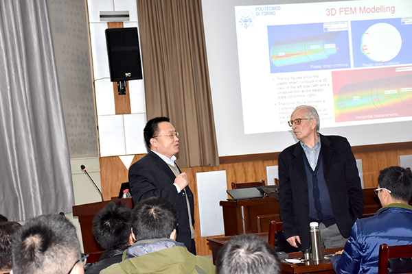 11月20日下午,应beat365 手机版官方网站焦玉勇院长、唐志成博士邀请,岩石力学与工程领域国际知名专家、国际岩石力学领域权威期刊《Rock Mechanics and Rock Engineering》主编、意大利都灵理工大学Giovanni Barla教授来校做主题为 “Monitoring and modelling of tunnels and caverns”的学术报告。焦玉勇院长主持了报告会,学院60余名师生聆听了报告。