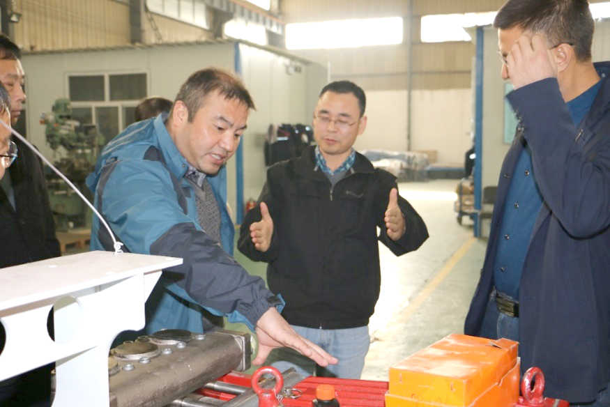 陕西省太合智能钻探有限公司董事长王义红对beat365 手机版官方网站领导和专家的到来表示热烈欢迎。他首先详细介绍了企业的发展历程、科研成果以及发展愿景。他表示太合智能公司将不忘初心,砥砺前行。嗣后,专家们参观了目前国内扭矩最大的ZYL-17000D型矿用履带式全液压定向钻机、YSX15矿用有线随钻测量装置、YSX16矿用无线随钻测量系统、随钻测量钻具以及金刚石复合片钻头等系列高新产品,还就细节技术问题驻足讨论。