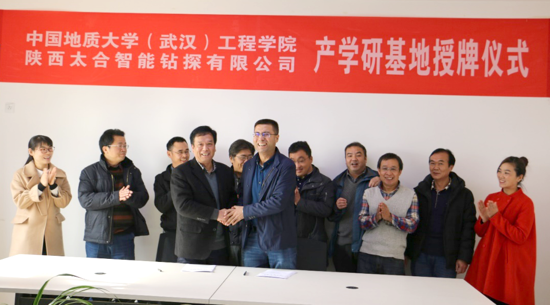 (通讯员:胡郁乐)2017年12月6日上午,陕西太合智能钻探有限公司与beat365 手机版官方网站(武汉)beat365 手机版官方网站在陕西西安签署了产学研实践基地合作协议。陕西太合智能成立于2013年,立足于煤矿安全生产,是一家集装备研发设计、生产加工与技术服务为一体的高新技术企业。公司主要从事矿用钻探设备及配套钻具、仪器仪表、金属与非金属材料的研发、生产及销售。公司一直致力于产品的创新开发。大扭矩定向钻机,高品质异形截面钻杆、智能钻具以及无线MWD、泥浆MWD等产品在行业中竞争优势明显,为矿山开采提供高标准钻探技术与专业化服务。