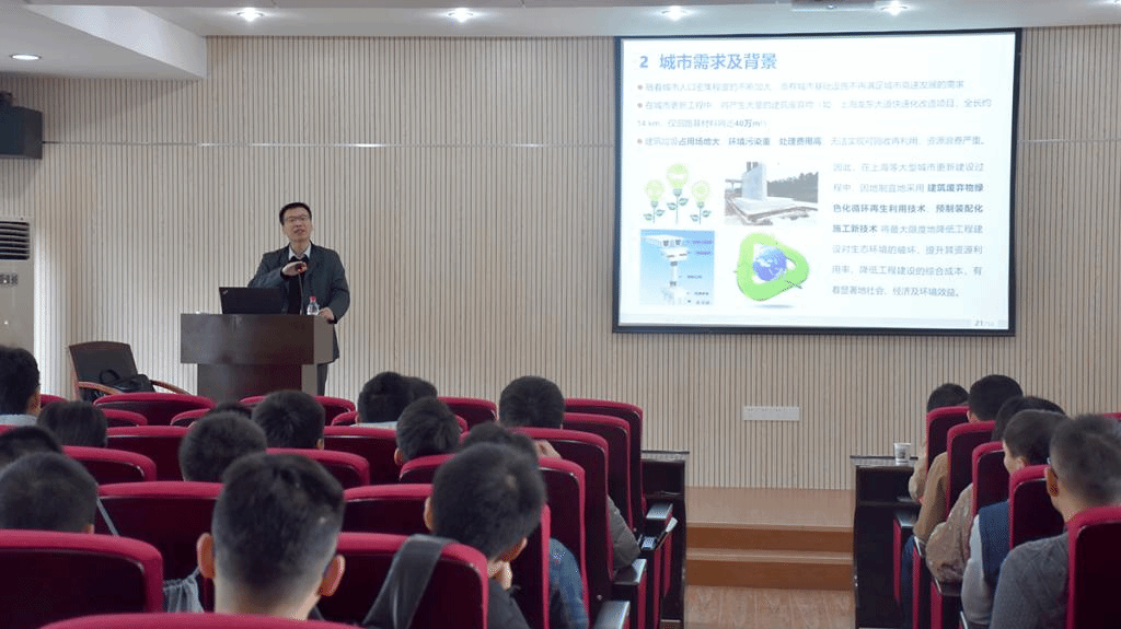 报告围绕“城市更新中绿色施工技术探索与实践”展开,介绍了上海建工集团工程研究总院在复杂的城市环境中绿色施工技术的探索和工程实践经验,分别从“高架桥梁预制拼装技术”、“地下结构预制拼装技术”和“渣土再生利用技术”三个方面介绍了绿色施工技术中的关键技术问题和积累的工程经验。报告结束后,吴小建所长热情回答了参会师生的提问,他衷心希望beat365官网师生在城市绿色施工技术上取得更大的突破,为解决我国城市施工中的环境难题做出贡献。