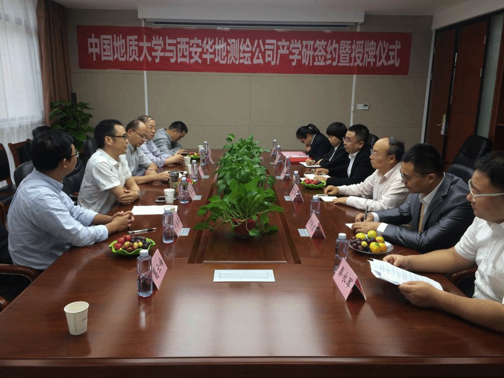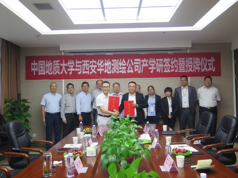 2019年9月15日-9月17日,beat365 手机版官方网站(武汉)beat365 手机版官方网站党委副书记江广长、副院长窦斌、勘察与基础工程系主任卢春华、姚爱国教授、院工会主席蔡记华教授及工程地质与岩土工程系葛云峰副教授一行赴西安,先后走访了陕西西探地质装备有限公司和西安华地测绘科技有限公司,并与陕西西探地质装备有限公司召开了产学研合作基地揭牌仪式,与西安华地测绘科技有限公司签订了产学研合作协议并进行揭牌。