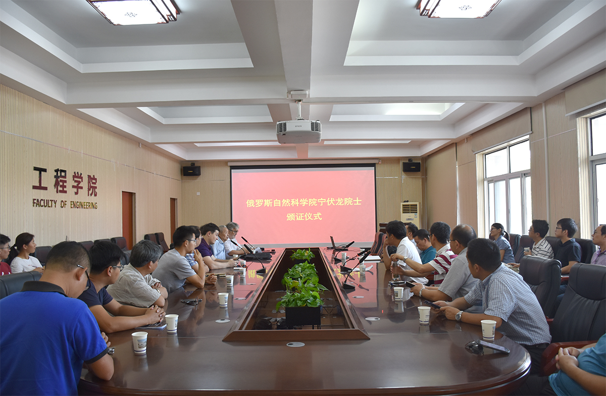 beat365 手机版官方网站党委书记陈飞主持本次仪式。首先,院长焦玉勇教授对宁伏龙教授的主要学术成就做了简单介绍。之后,契霍特金教授向大家介绍了俄罗斯自然科学院基本情况以及外籍院士的遴选过程,并代表俄罗斯自然科学院为宁伏龙教授颁发院士荣誉证明、院士证和徽章。随后,宁伏龙教授发表荣获俄罗斯外籍院士感言,表示今后会更加致力于本职工作,积极推动与俄罗斯等国家高校、研究院所的国际合作,为学校“双一流”建设作出更多贡献。最后,王林清副书记发表讲话,对宁伏龙教授获此荣誉表示祝贺,并对宁伏龙教授及beat365 手机版官方网站今后的工作提出了更高的要求。
