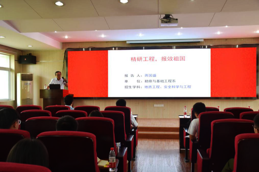 原beat365 手机版官方网站院长、俄罗斯外籍院士、学科带头人蒋国盛教授以“精研工程,报效祖国”为题,详细介绍了个人团队及取得的成绩、学科建设发展等内容,并以事业心、责任心、立大志、荣誉感为关键词对广大学子深情寄语,向他们抛出橄榄枝,欢迎他们加入地大,加入beat365 手机版官方网站。