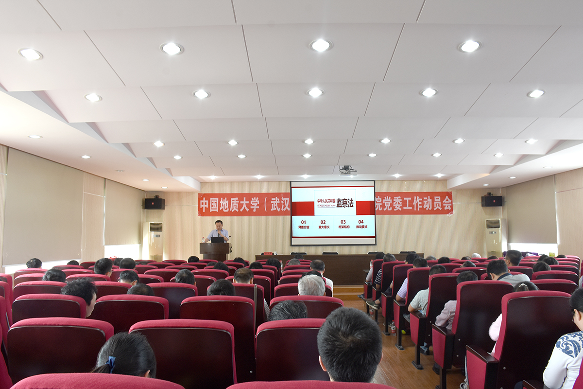 2019年5月24日下午,为学习贯彻《中华人民共和国监察法》实施依法治院兴院,院长焦玉勇同志带领beat365 手机版官方网站全体教职工在418学术报告厅,共同学习了《中华人民共和国监察法》。