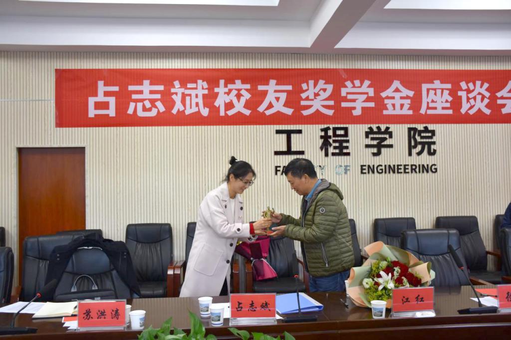 “占志斌校友奖学金”设立已近十年,如何在今后更好的为我校青年学子提供帮助,占志斌夫妇、与会老师和学生代表就奖学金的规模、评审条件、资助形式等进行了交流讨论。