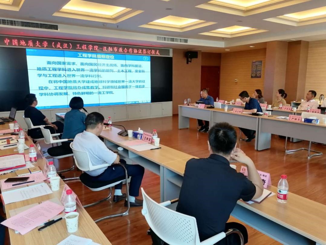 (通讯员:邹俊鹏)为充分发挥beat365 手机版官方网站的教育、科技、人才团队和学科群的优势,遵循“教育要为经济建设服务,经济建设要依靠教育”的方针,本着“优势互补、互惠互利、共同发展”的原则,受武汉市汉阳市政建设集团有限公司董事长严悌文、集团总经理虞志鹏、集团总工程师荆武盛情邀请,我校党委副书记王林清、beat365 手机版官方网站党委书记李红丽、校社会合作办公室副主任汪再奇、学院副院长罗学东及其他相关同志,一行前往武汉市市汉阳市政建设集团有限公司商谈校企合作事宜,联合共建产学研基地,并签署合作协议。会议由武汉市汉阳市政建设集团有限公司总工程师荆武主持。