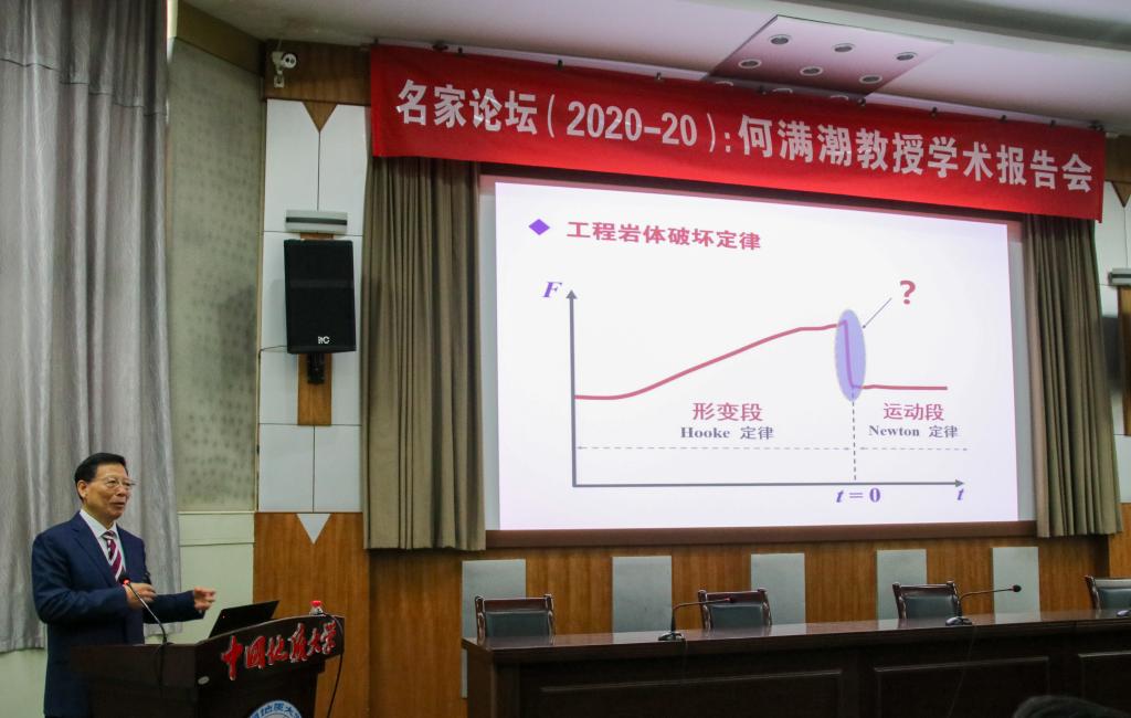 (通讯员:李浩林 黄静)2020年11月19日下午2:30,中国科学院院士何满潮教授作客名家论坛,在八角楼学术报告厅作了题为“滑坡灾害短临预报思考”的学术报告。我校副校长赖旭龙教授,beat365 手机版官方网站院长焦玉勇教授,beat365 手机版官方网站副院长王亮清教授、罗学东教授、窦斌教授,勘基系党支部书记段隆臣教授以及师生代表近200人参加了此次学术报告会。副校长赖旭龙教授主持了此次学术报告会。