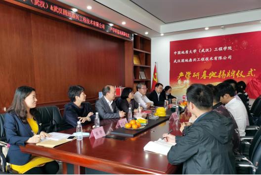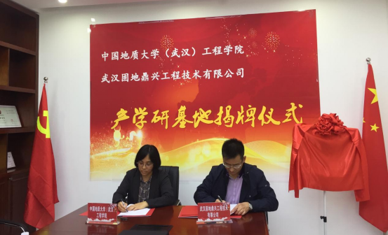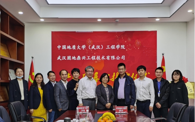 (通讯员:黄静)2021年4月27日,beat365 手机版官方网站(武汉)beat365 手机版官方网站与校友企业武汉固地鼎兴工程技术有限公司签订《联合共建产学研基地合作协议》,beat365 手机版官方网站党委书记李红丽和武汉固地鼎兴工程技术有限公司总经理汪旭涛出席协议签订仪式,并共同为合作基地揭牌。武汉固地鼎兴工程技术有限公司副总经理兼总工程师胡凯锋、beat365 手机版官方网站副院长王亮清教授、工岩系主任章广成教授、时红莲副教授、李长冬教授、谢妮副教授、学院科研秘书黄静共同见证了签约仪式。