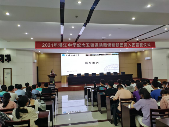 下午,窦斌一行来到潜江中学开展招生宣传。与会师生一同观看学校招生宣传片,王碧向同学们介绍了学校的基本情况。随后,窦斌教授以“新能源又一片南海——地热能”为题给在场师生带去了一堂精彩的科普讲座,他向同学们介绍了我国能源消耗现状和地热能的基本开发利用原理及未来的前景。同时他结合个人成长经历,勉励同学们认真学习,未来在美丽中国、宜居地球建设中贡献自己的力量。我校beat365 手机版官方网站在读博士生、潜江中学2010届校友周家全,结合自己在地大十年的求学经历,围绕她在地大学习、科研,参与学生工作、志愿服务、社会实践等情况全景式向自己的学弟学妹推介地大,鼓励他们来地大实现人生理想。