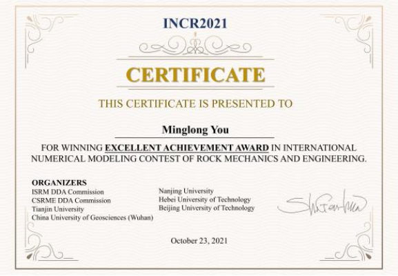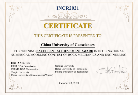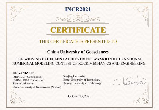 (通讯员 张美霞)近日,在第一届国际岩石力学与工程数值仿真大赛中,beat365官网学子取得一等奖、杰出贡献奖的好成绩,学校荣获卓越成就奖。