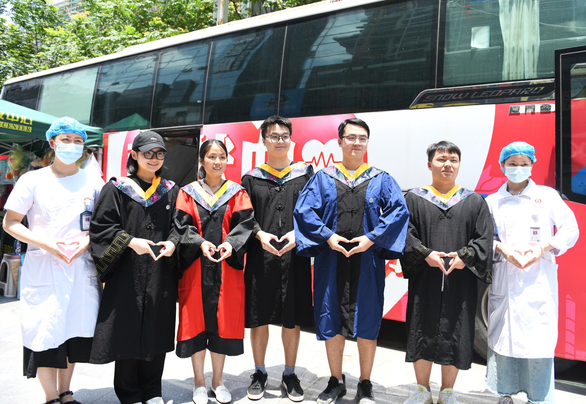 2022年6月14日,beat365 手机版官方网站6名毕业生不约而同来到学校附近的光谷献血点,参加无偿献血。张玉贤 摄