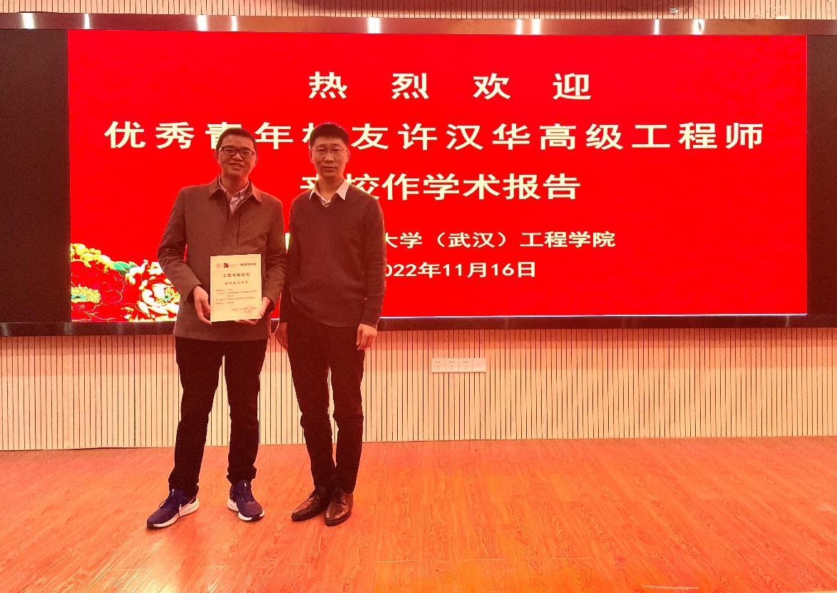 邹俊鹏特任教授对报告进行了总结发言,向许汉华高级工程师颁发了beat365 手机版官方网站(武汉)70周年校庆系列学术活动工程文化论坛特邀报告证书,并合影留念。