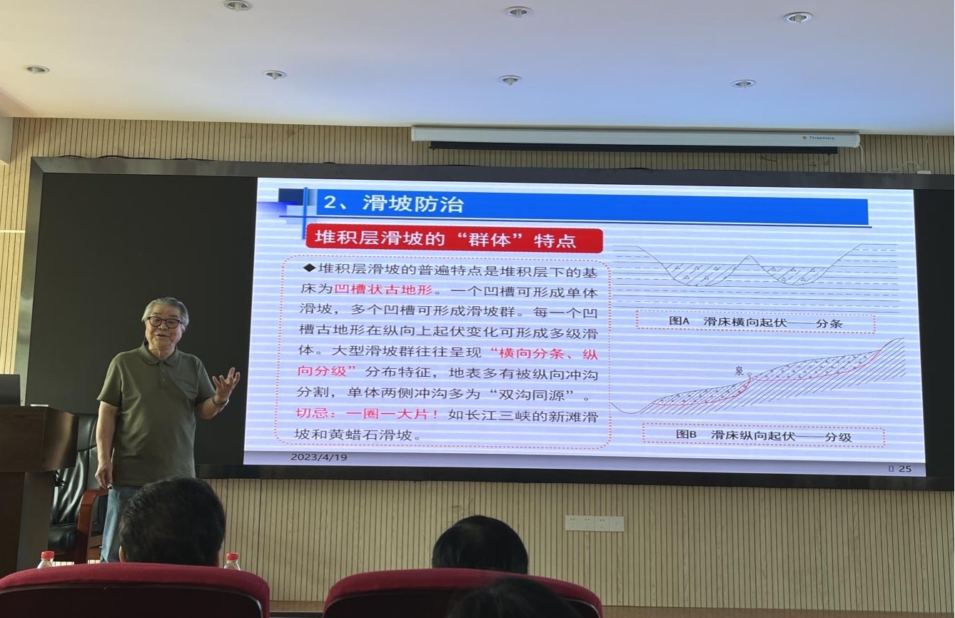 活动还邀请了中冶武勘工程技术有限公司副总经理占仲国教授级高级工程师、武汉市勘察设计有限公司副总经理、总工程师官善友教授级高级工程师、中国一冶集团有限公司副总工程师王平教授级高级工程师、湖北建鄂勘察设计审查咨询有限公司向艳正高职高级工程师、中南勘察设计院集团有限公司副总工程师马郧正高职高级工程师、长江勘测规划设计研究有限责任公司所长助理徐复兴正高职高级工程师、中国科学院武汉岩土力学研究所江权研究员、武汉理工大学芮瑞教授、武汉华太岩土工程有限公司吴西臣正高职高级工程师等莅临现场。beat365 手机版官方网站唐辉明教授、李红丽书记、章广成教授、徐光黎教授、贾洪彪教授、葛云峰副教授、周佳庆特任教授等150多名师生在现场聆听了报告。