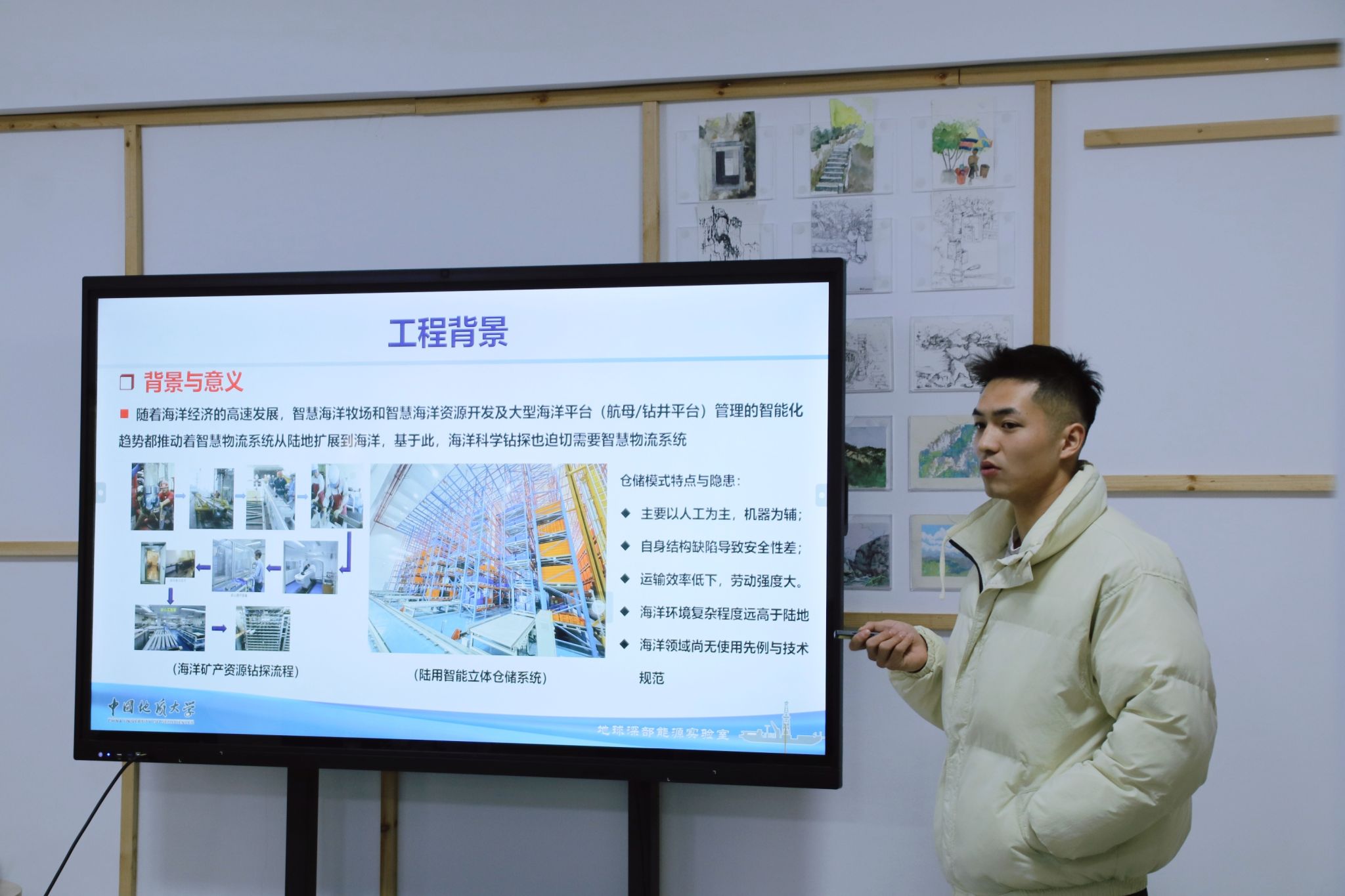 胡晨博士作为参与“梦想”号重要子系统建造的学生代表,和宁伏龙教授出海月余。他讲述了自己参与大洋钻探船岩心自动化转运系统关键技术研发中所做的工作和心路历程。他深情而不失幽默地勉励学弟学妹们,一是要努力学习钻研,打下扎实的基础,为将来参与重大工程建设积蓄力量;二是要选择大平台、参与大工程、成就大人生,把学到的专业知识在行业内用好,勇担重任、报效国家、服务人民;三是要努力构建良好的导学关系,师生共进、成就梦想。