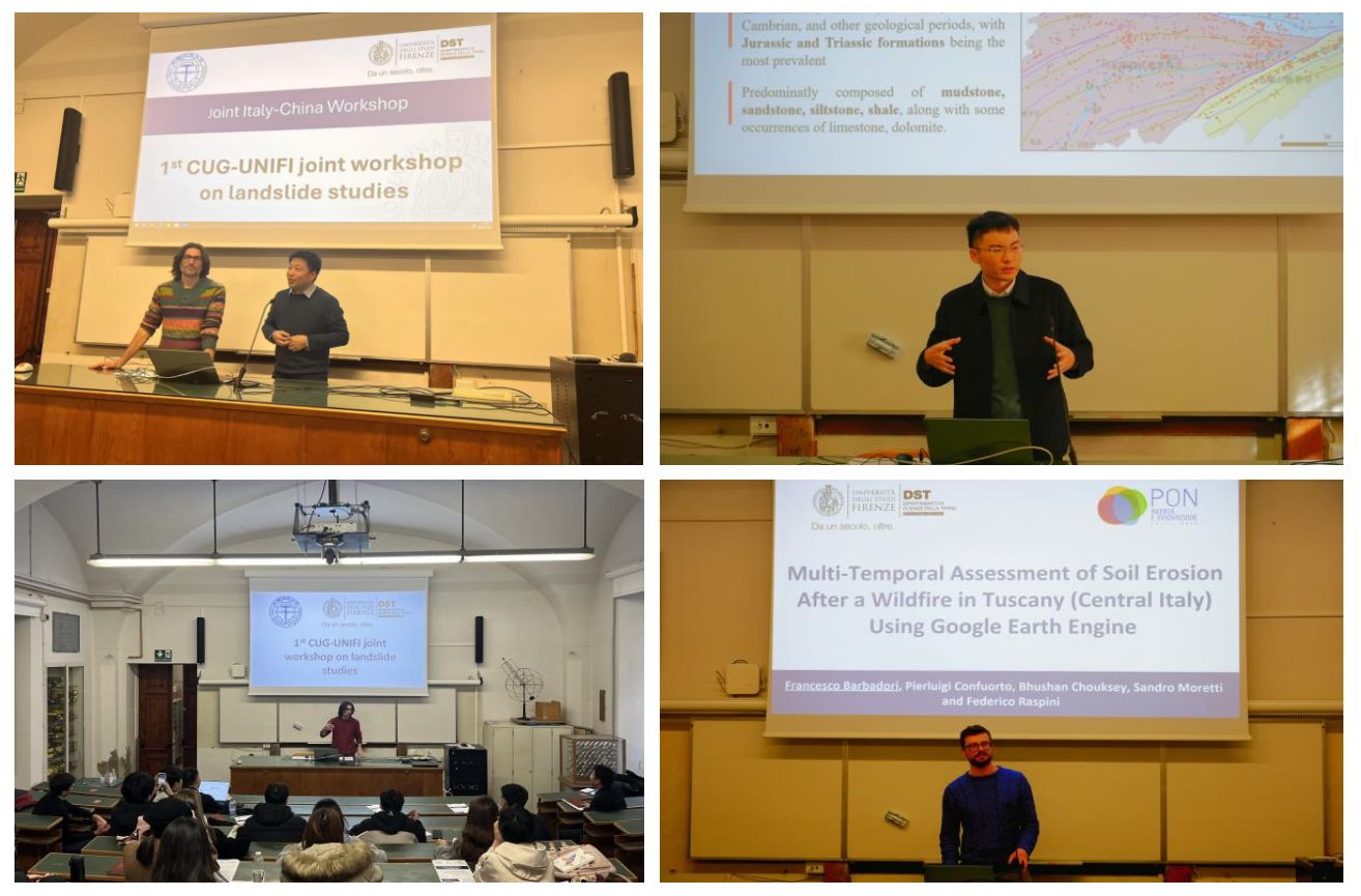 1月8日至9日,beat365 手机版官方网站师生和佛罗伦萨大学师生开展了为期2天的中意滑坡研究联合研讨会。beat365 手机版官方网站李德营教授、刘书豪老师与朱仕林、佘祥杰、王凯等博士生和佛罗伦萨大学Samuele Segoni教授、 Nicola Nocentini、 Francesco Barbadori、Istan Szakolczai等博士连续开展了十余场专题讲座,内容涵盖“高度植被覆盖地区潜在滑坡的识别”“基于机器学习方法的滑坡时空预测”“考虑地质环境空间差异性的区域滑坡降雨阈值研究”“使用谷歌地球引擎对托斯卡纳山火后的水土流失进行多时间尺度评估”等主题,两校师生就上述主题进行了广泛深入的研讨交流。