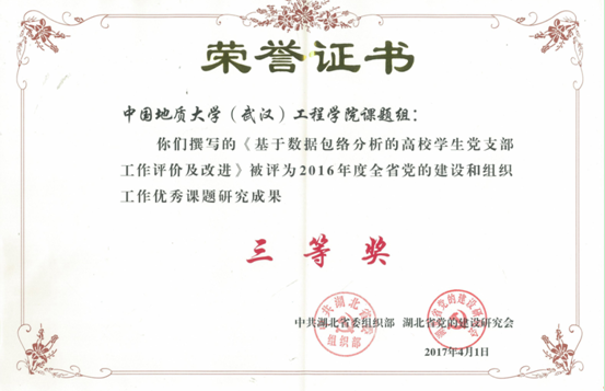 (通讯员:文新)近日,中共湖北省委组织部、省党建研究会公布了《关于表彰2016年度全省党的建设和组织工作优秀课题研究成果的通知》(鄂组通〔2017〕10号),beat365官网由江广长、李少杰、丁继国完成的《基于数据包络分析的高校学生党支部工作评价及改进》课题获评三等奖。