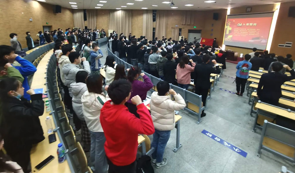 2020年学院共发展预备党员167人,beat365 手机版官方网站分党校秘书王焱同志带领同志们进行集体宣誓。