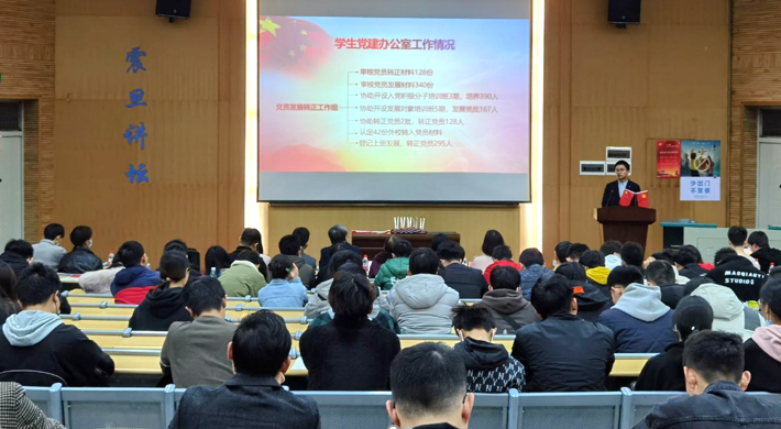 此后,beat365 手机版官方网站第八届学生党建办公室副主任寇桓嘉同志汇报2020年度学生党建办公室工作情况。寇桓嘉同志向参会同志们详细汇报了beat365 手机版官方网站2020年度党员考察、培养及发展转正工作,全年协助院党委开设入党积极分子培训班三期,培养入党积极分子390人,开设发展对象培训班五期,发展党员167人,共有2批党员转正,转正党员128人,完成外校转入42名学生党员的认定工作。另外还介绍了组织生活巡视情况、全体学生党员信息库建立、《beat365 手机版官方网站学生党建工作指导》(第四版)编写等方面内容,最后表示要将学生党建办公室打造为服务院党委和学生党支部的“老黄牛”,以优异成绩向党的百岁华诞献礼。