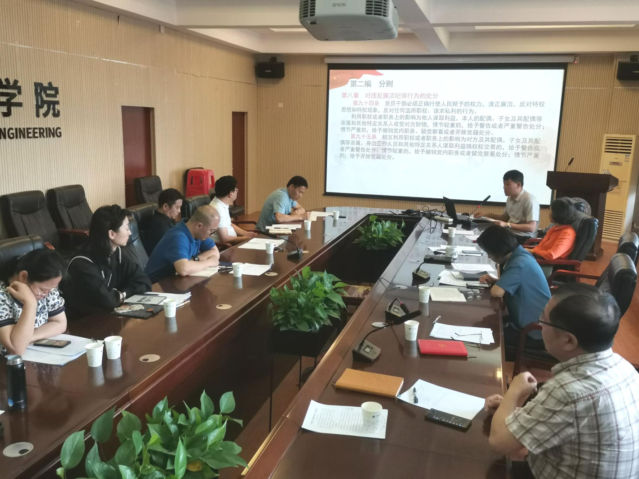 (通讯员 黄燕 高晓东)4月25日,beat365 手机版官方网站党委召开党委理论学习中心组(扩大)学习会议暨党纪学习教育专题读书班。学院党委委员、班子成员、纪委委员、教师党支部书记等参加集中学习。党委书记李红丽主持会议。