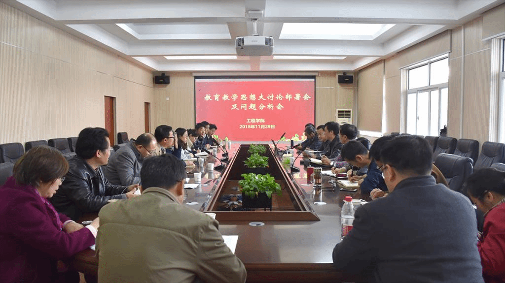 beat365 手机版官方网站于2018年11月29日下午14:00在工程楼315会议室,召开了“beat365 手机版官方网站教育教学思想大讨论部署会及问题分析会”。参加会议的有学院党政领导和各系主任、支部书记及学科带头人。会议由党委书记陈飞主持,此次会议目的是提高认识,统一思想,落实行动。