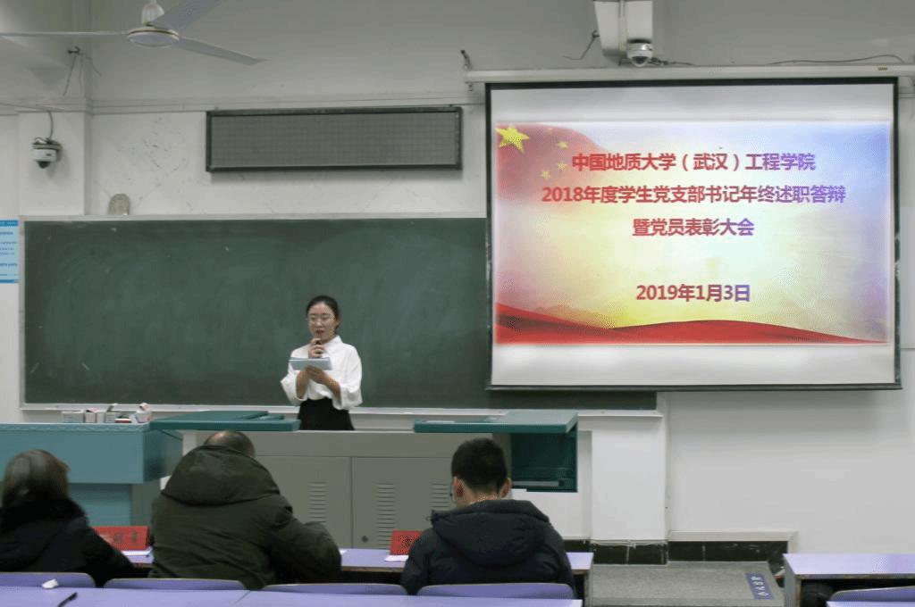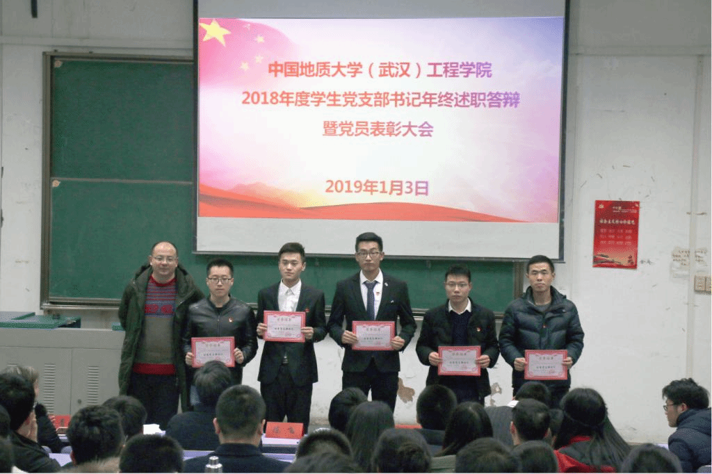 2019年1月3日晚,beat365 手机版官方网站2018年度学生党支部书记年终述职答辩暨党员表彰大会在教三楼201和207教室成功举行。