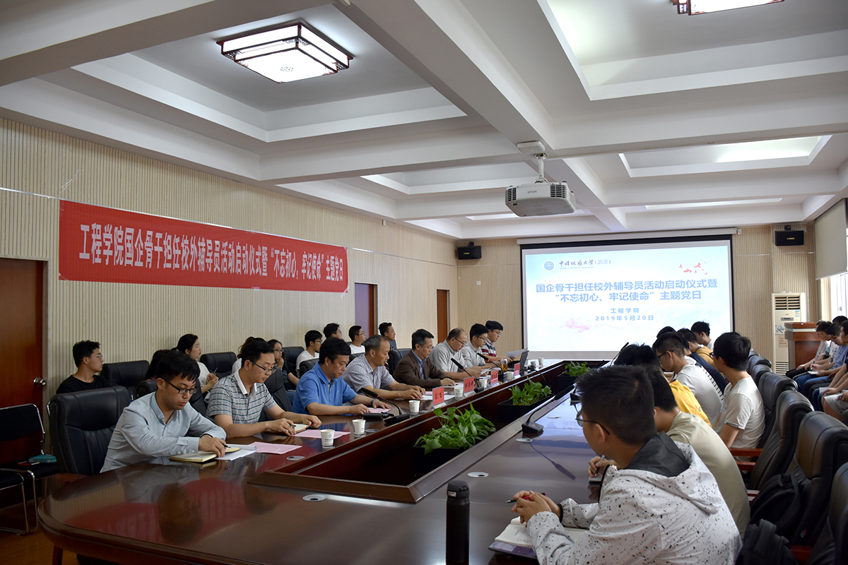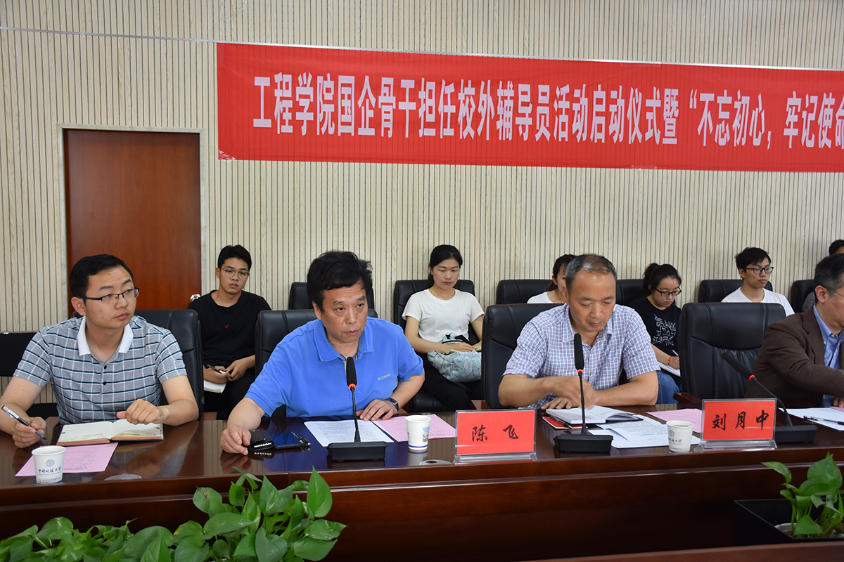 5月20日下午,beat365 手机版官方网站国企骨干担任校外辅导员启动仪式暨“不忘初心,牢记使命”我与国企面对面主题党日在工程楼315报告厅成功举行。beat365 手机版官方网站校外辅导员、中国黄金集团湖北三鑫金铜股份有限公司提升车间主任、党支部书记刘月中,学校学工处副处长苏洪涛,beat365 手机版官方网站党委书记陈飞、副书记江广长、全体辅导员及四个学生党支部共40余人参加活动。