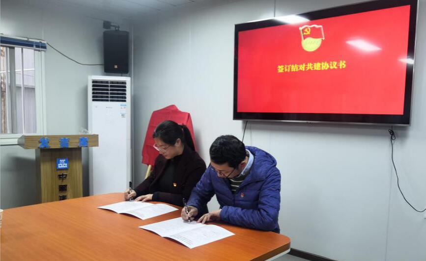 接着全体成员重温入党誓词,机关党支部书记陈婷华与beat365 手机版官方网站就业专职辅导员王俊签订结对共建协议书,中建三局一公司中南公司副总经理梁劲松与beat365 手机版官方网站党委副书记江广长进行揭牌仪式。